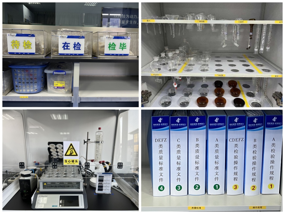 質量是企業(yè)的根本。在質量控制工作中,每個細微環(huán)節(jié)都需要認真細致、規(guī)范操作,才能保證結果精準無誤。質量控制部通過改善實驗室環(huán)境,保證檢驗操作正確開展。樣品按待檢、在檢、檢畢分顏色擺放,操作不易弄混。對文件、物品進行分區(qū)定置,使用定位膠帶或分隔板進行分隔,便于快速、準確查找。在檢驗儀器旁定置圖文并茂的操作規(guī)程,便于閱讀,提高了檢驗人員操作的準確率。這一系列舉措使得檢驗環(huán)境大大改善,提高了檢驗人員的效率與準確率。