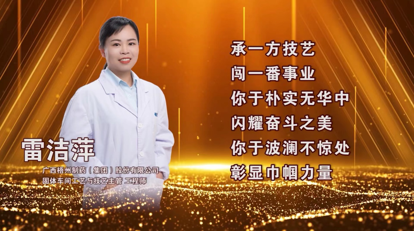 近日,中華全國總工會在北京隆重召開2023年全國五一巾幗獎表彰大會,大會表彰了450個全國五一巾幗標兵崗、450名全國五一巾幗標兵。梧州制藥固體車間工藝與技術主管、中華跌打丸制作技藝“非遺”傳承人雷潔萍榮獲“全國五一巾幗標兵”稱號。其所在的固體車間于2021年度曾榮獲 “全國巾幗文明崗”榮譽稱號,她們巾幗不讓須眉,立足崗位履職盡責,把智慧和汗水奉獻在崗位,為企業(yè)快速發(fā)展作出了積極貢獻,充分發(fā)揮了“半邊天”不可替代的作用。