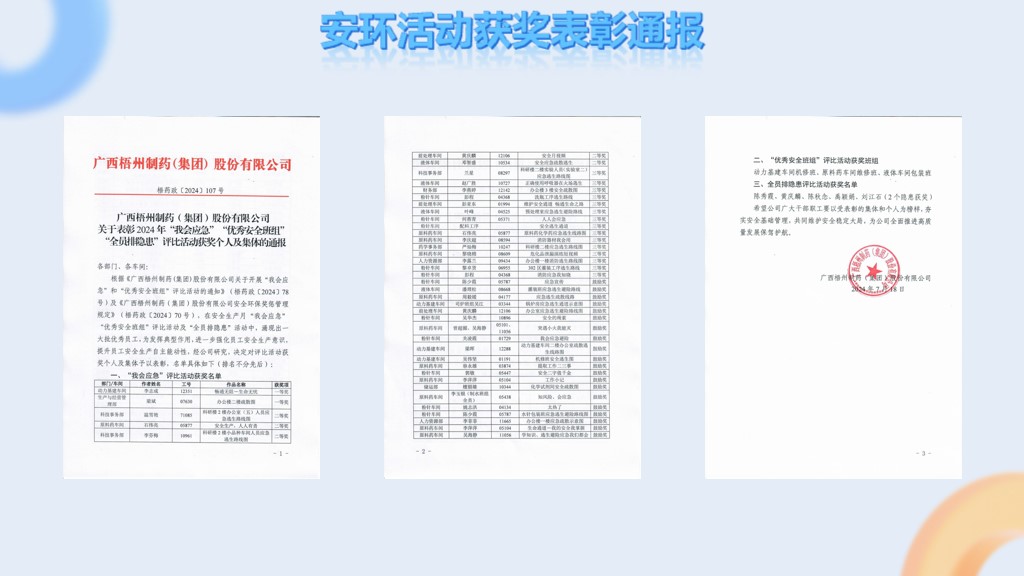 梧州制藥2024年半年度安健環(huán)消???/h3>