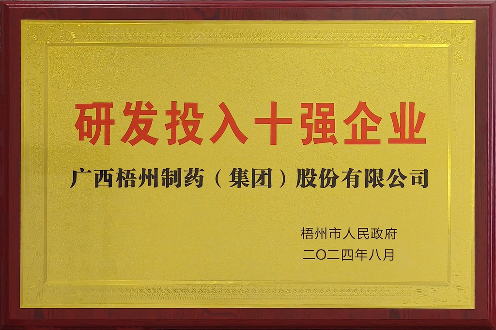 廣西梧州制藥(集團(tuán))股份有限公司獲評(píng)研發(fā)投入十強(qiáng)企業(yè)