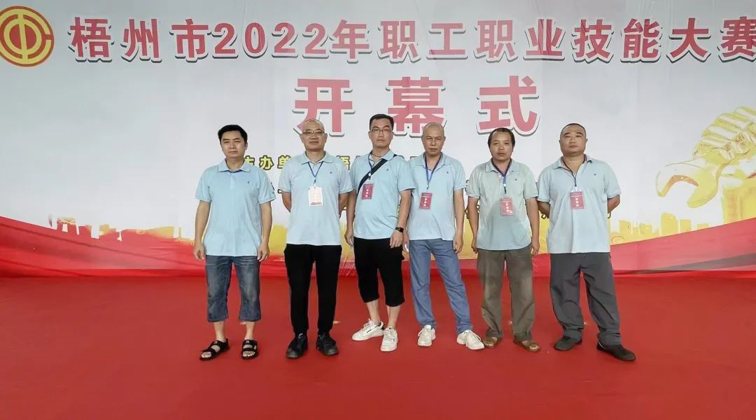 易健華(左一)參加梧州市職工職業(yè)技能大賽